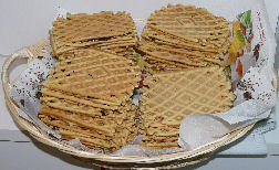 Le Pizzelle, voici nos Pizzelle (Galettes), préparées maison. Il y a plusieurs formes possibles : rondes, en forme de coeur, roulées au chocolat ou à la confiture. |